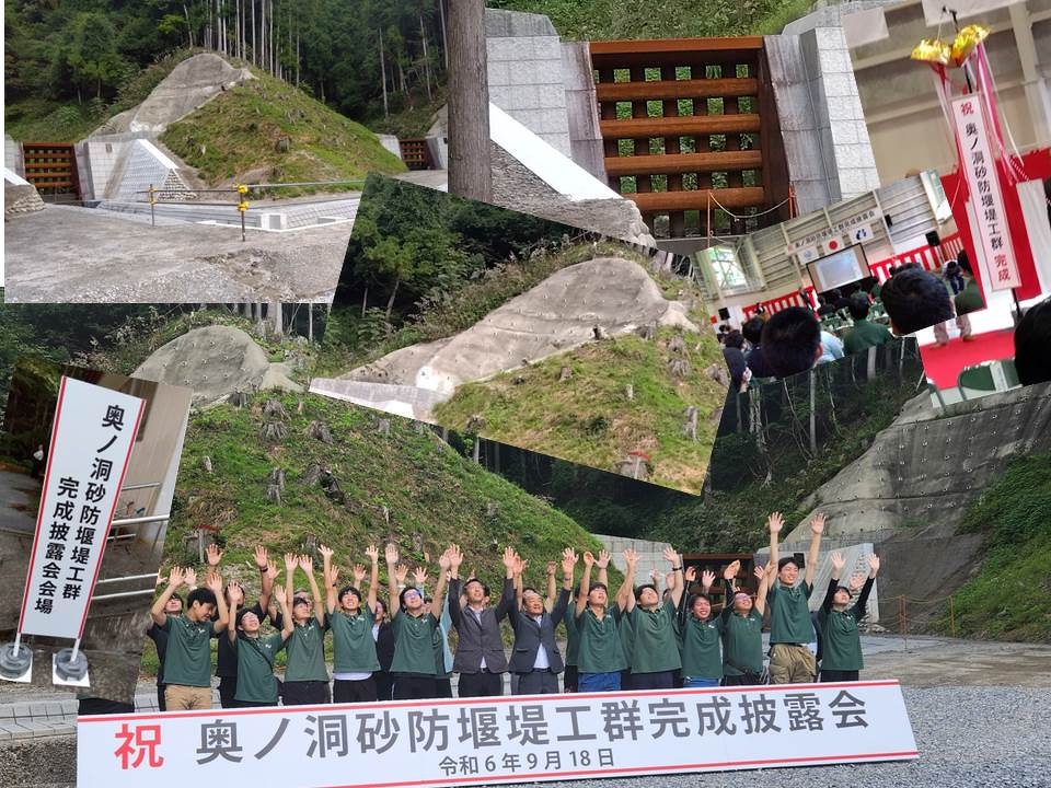 奥ノ洞砂防堰堤工群(おくのほら さぼう えんてい こうぐん)が完成し、その竣工式に西濃学園(高2,3生)が参加してきました。堰堤(えんてい)?ダムではないの?堰堤とダムの違いは、貯水量の規模の差で、ダムよりも貯水量が少ないのが堰堤です。そして堰堤の主な役割は、土砂災害を防ぐことです。竣工式でも、時速30Km以上で流れてくる土石流の映像が流れ、砂防がいかに必要かを担当の方が熱く語られていました.