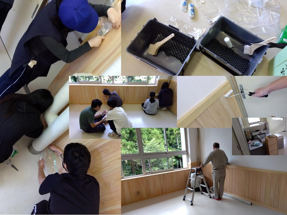 3階「心の部屋」をみんなでリニューアルしました。今までは全体が真っ白で、清潔感のある部屋でした。それをもっと暖かみのある部屋にしようと、様々な方の協力を得て木質化することになりました。みんなで業者の方と一緒にリニューアルしました。これからは、この部屋で今まで以上に心穏やかに話ができると思います。