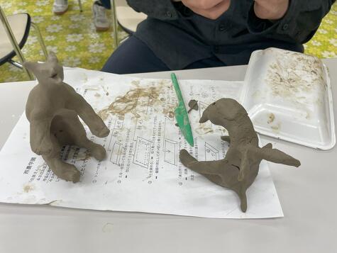 発泡スチロールのトレーを型にしたお皿や小物入れなど、生徒たち思い思いの作品ができあがりました!今後、乾燥させて素焼きしたものに絵付けをする作業、釉薬を塗って焼きの作業があります。完成するまでまだまだ時間が掛りますが、出来上がりがとても待ち遠しいです!!!