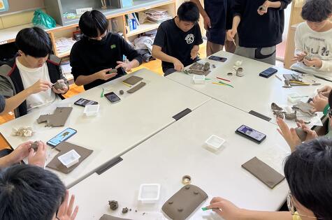 今日は中高の全学年で、陶芸教室がありました。 以前、学園で教鞭をとってみえた先生と陶芸が趣味の教員、美術の先生が講師となって作品を作りました。