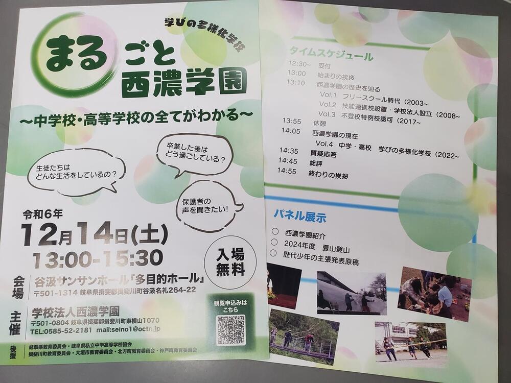 【お知らせ】12月14日(土) 13:00~「まるごと西濃学園」開催!!