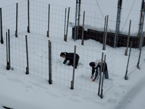 画像の右下に、金網で囲まれた場所にいる中3のOさんと中2のS君。