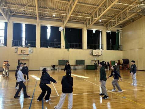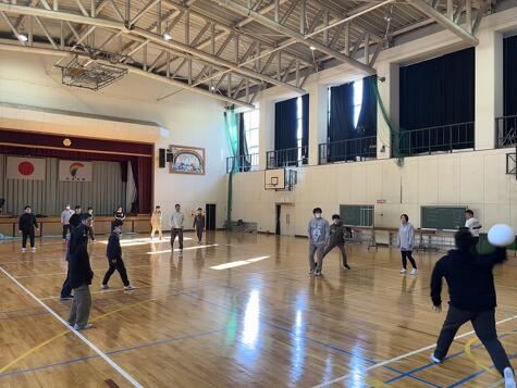 午前中は体育館でスポーツ交流。