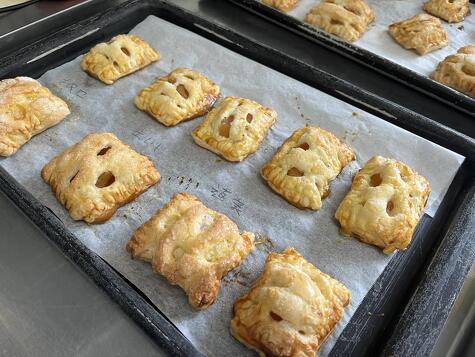 パイ生地に卵黄を塗ったおかげで焼き色もいい感じ!