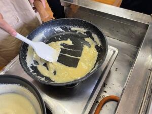 今日は学校がお休みです。家庭科の先生が寮生で希望者を募って、午後からキャラメルを作りました。 材料は砂糖、バター、牛乳のみでとってもシンプルです。材料をフライパンに入れて火にかけて、 ひたすらまぜます。なかなかとろみがついてきませんでしたが、ふつふつと泡立ってきたらとろみが 付き始めました!材料も工程もシンプルで驚きました。 今は、型に入れて冷蔵庫で冷やし中です!固まったらできあがりですが、さてさてお味はどうでしょうか。 楽しみです!!!