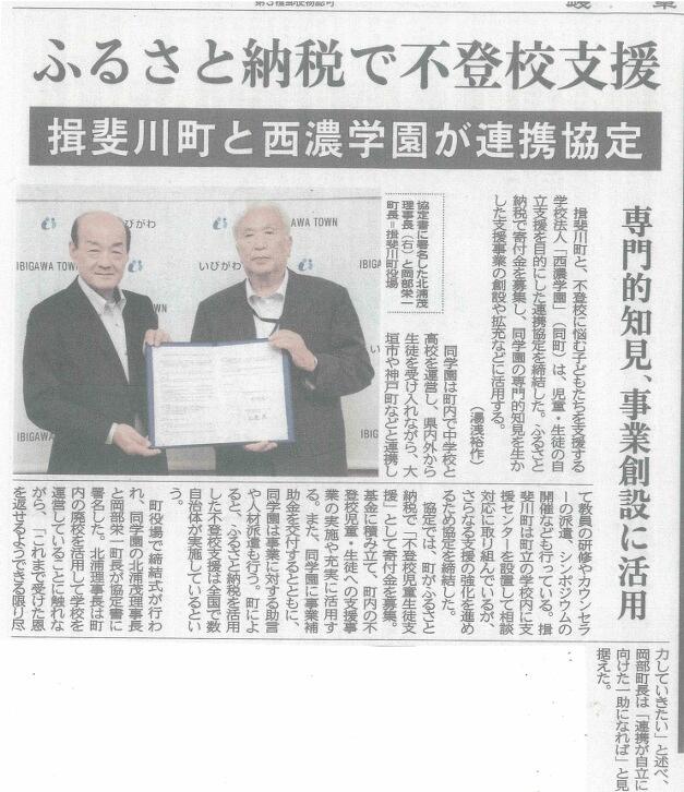 ふるさと納税で不登校支援 揖斐川町と西濃学園が連携協定(岐阜新聞)