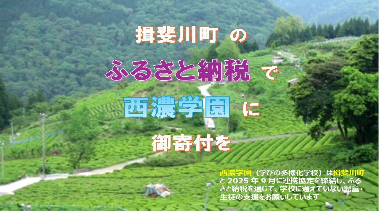 ○入力方法:上記揖斐川町のご案内サイト → 「ふるさとチョイス」・「楽天ふるさと納税」他の納税ポータルサイト(掲載順)→ 「使い道」は6番目「町内の私立学校の不登校児童生徒等の支援のために<学校に通えていない私立学校の児童・生徒の支援をします>を選択。
