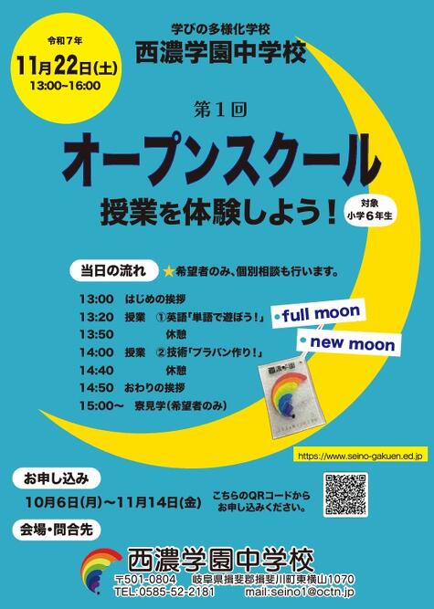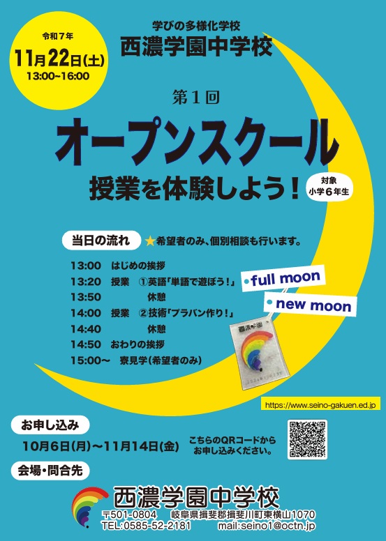 【申し込み受付中】11月22日(土)、第1回「西濃学園中学校オープンスクール」開催
