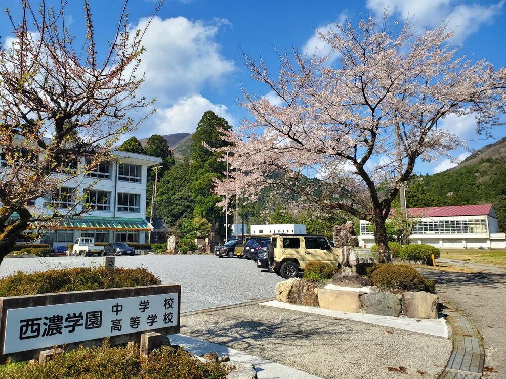 「西濃学園中学校・高等学校 久瀬校舎」の桜です。