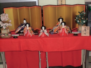 いつもおいしい給食を作ってくれる渡辺さんが、雛人形を作ってきて下さいました。