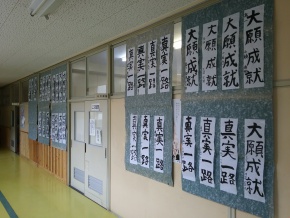 先日、みんなが行った書き初めの展示がされました。 一筆、一筆、丁寧に書いたのがよくわかります。 この展示で、どれが一番よく書けているか、職員で投票を行います。 だれの作品が選ばれるのでしょうか。