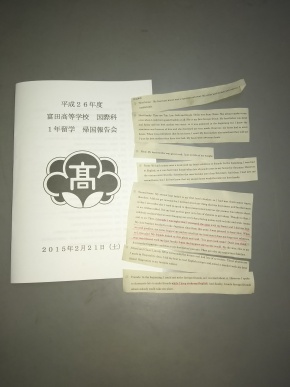 帰国報告会では、どんなことを学んだのか、向こうでの生活、ホームステイ先のファミリーとの交流などを、全て英語で発表していました。