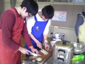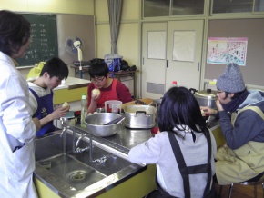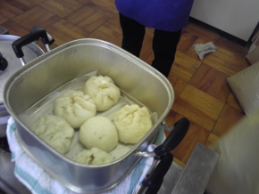 家庭科の授業で調理実習をしていました。本日のメニューは肉まん、あんまんです。 中身の具材をみじん切りにしたり味付けをしたり、そしてもちろん手作りの皮に具を入れて蒸します。美味しくできたかな?初めて自分で作った肉まんとあんまん。私も味見をさせて貰いましたが、美味しさは皆の笑顔を見たら最初から十分にわかりましたよ!!