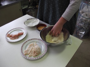 料理好きな生徒と職員による料理クラブ。今日のメニューはカツレツです!!