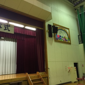 中学3年生が作ってくれた、卒業制作を体育館に設置しました。