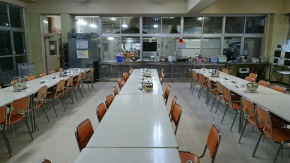 毎日の学園の朝・昼・晩の食事は、全てこの食堂で食べています。ただし、高校生の昼食は、長瀬学舎で食べています。 本日の寮生は、30名です。今日の夕食のメニューは、「ご飯、みそ汁、シャケ、大根と鶏肉の煮物、野菜サラダ」です。ご飯は、食べ放題です。毎食、地元の方々に、調理していただいています。 今日も、調理していただいた方に感謝して、食べたいと思います。