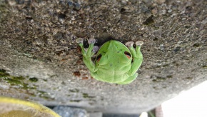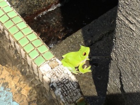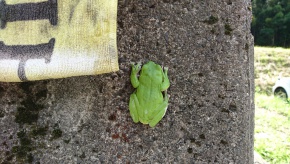 午前中、地元の方が飛び込むようにして職員室にいらっしゃいました。 「モリアオガエルが、学園の寮の近くにいるので、連絡しに来た」ということでした。 生徒は、授業中でしたので、職員が現地に駆けつけて、写真を撮ってきました。
