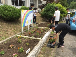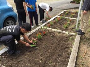 長瀬校では、今日は花壇のリニューアルを行いました。 少し前に、『第2回いも祭り』を行おうと、ジャガイモを植えてみたのですが、植え方が悪かったのか、花壇だからなのか、全く芽が出てこず、あきらめて花を植えることにしました。 花屋さんで、なるべく、安くて、丈夫で、見栄えのいい花を選びました。 花があると学校が凄く明るくなったように感じました。これから交代で水やりをし、大切に育てます!