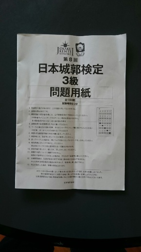 今日、中3のS君は、名古屋で「城郭検定」3級を受験してきました。試験は、名古屋城近くの護国神社内の桜華会館で行われました。昨年は、4級を受験して、見事合格をしました。歴史に興味を持っているS君は、日頃から試験に備えて準備をしていました。問題は、100問あり、70%程度の正解で合格のようです。 秋には、歴史検定を受験する予定ですが、昨年に引き続いて、合格しているといいですね。