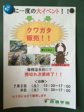 今日の午後もやっぱり雨は降っていません。 午後の体育はサッカーです! 回を重ねるごとにみんな凄く上手くなってきました。伸び率はプロ以上です! また、高3はクワガタ販売に向けて準備に抜かりがありません。 7月2日・9日は道の駅に是非来てください!