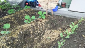 中学3年生が技術家庭科の授業で植えた野菜(カボチャ・大根・にんじん)が無事に発芽しました。