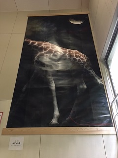 大きな大きな絵を寄贈していただきました。タイトルは「キリンと月」だそうです。高校生校舎に飾らせていただきました。ありがとうございました!!