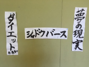 高校生は少し遅くはなりましたが、書き初めです。 今年は少し時間を多めにとって、定型文の『夢の実現』『新年の誓い』がら一つ、 そして自由題を一つの, 二作品を提出してもらいました。 みんな真剣に取り組み、だんだんと楽しくなって来たようで、 後半からはいろいろな作品ができあがっていました。