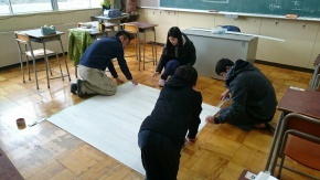 いよいよ、中学3年生の卒業式も3月3日に迫ってきました。今年も、卒業制作に取りかかりました。生徒と担任、美術の先生とで構想を練り、今日からスタートしましたが、3月までの出来上がりが、とても楽しみです。