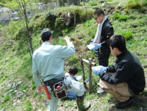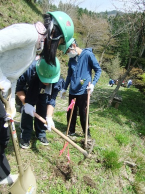 今日は毎年参加させていただいている、イビデンの活動の日でした。 この活動は今年で10年目になるそうです。 植樹をしたり防腐剤を塗ったり、イビデンや地域の方々と楽しみながら一生懸命森づくりに参加しました。桜やカエデの樹を植えたので、また季節ごとに山をみるのが楽しくなりますね!