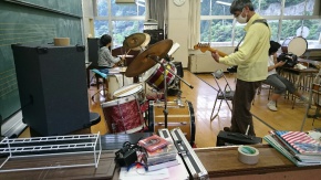 授業後、藤橋学舎の3階「音楽室」から、ドラムとギターの音が流れてきました。中2男子I君のドラムと、学園教員のエレキギターの演奏でした。 I君のとても、楽しく、ドラムを叩く姿に、しばらく目が釘付けになりました。何か好きなことに熱中している姿は、微笑ましく感じました。