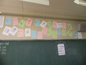 高校1年生では4月より、SST(ソーシャルスキルトレーニング)の授業の中で、こんなクラスにしていきたいという話をして来ました。その総仕上げとして、みんなで考えたことばを級訓にしました。「いじって、わきあいあいと、適度に厳しく、アットホームに。」です。みんなで相談して一文字ずつ担当して作りました。さあ、どんなクラスになっていくのでしょう!