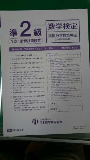 夏休み中に、吉報がまた届いていました。1学期に受けていた6名の生徒の数学検定合格の知らせでした。受験者は、準2級が2名、4級が2名、5級が2名で、全員合格をしました。 その中で、準2級の高2男子M君と、4級の中3男子S君の2人は、満点合格でした。2学期も続けて、チャレンジすると全員が話しています。