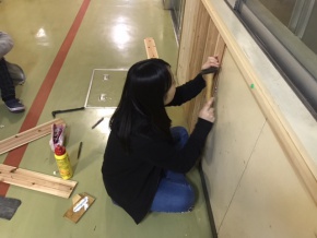 今日の三年生の午後からの授業は技術でした。 みんなが釘を打つ姿も、回を重ねるごとに様になってきました。釘を打つのが苦手!と言っていた生徒は、木にやすりをかけたりと分担しながら作業を進めていました。 また、今日は放課後に岐阜大学の医学部の学生のみなさんと自分たちで作ったほうれん草を使って、お好み焼きづくりをするそうです。おいしくできるといいですね。