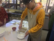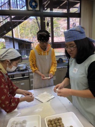 今日は藤橋地区の公民館活動「栗大福でお抹茶を楽しむ会」に参加してきました。 教えてくれた講師の先生が栗餡を作ってくださり、私たちは、大福を作りました。 手が真っ白けになりながらも、一生懸命大福を作る姿は真剣そのものでした。 自分たちで作った大福と、自分で点てたお抹茶を一緒に頂きました。 とてもおいしかったです。 地域の方と触れ合いながら、和気あいあいと楽しむことが出来ました。 公民館の方々、ありがとうございました。