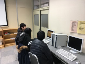 今、パソコンを使った授業ではグループごとにオリジナルの物語を考えて制作を行っております。それぞれのグループがアイデアを出し、またコンピュータの技術を使ってユニークな制作をしています。個人でやるより力を合わせることでより技術や発想力が膨らむ授業になっています!!