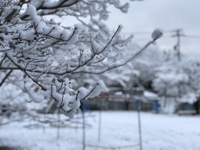 昨晩からの冷え込みで校庭の木々も雪化粧です。