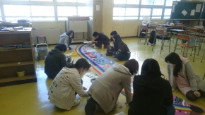 学園の卒業式も、いよいよあと1週間になりました。中学3年生は、卒業間近に迫り、卒業制作に意欲的に取り組んでいます。 今年度は、生徒と美術の中島先生との考案で、ベニヤ板に絵を描いて、生徒昇降口に掲げます。完成が、とても楽しみですね!