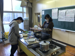 来週の火曜日に卒業式を控えた中学三年生は、今日が最後の家庭科の授業です。 様子を見に行くと、みんなでとても楽しそうにホットケーキを作っていました。 盛り付けも、楽しくいろいろな具材をのせていました。 こうした雰囲気ももう少しで見納めかと思うとさみしいです。