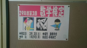 今年度、各種検定の最後になりました数学検定を4名が、学園で受験しました。今年度初めてチャレンジした検定ですが、延べ16名の生徒が受けてくれました。前回までで12名が受けましたが、準2級~5級まで見事全員が合格して、各級の取得に成功しました。 来年度も、漢字検定、英語検定、数学検定に留まらず、それぞれの得意な分野の検定にチャレンジして欲しいと思います。
