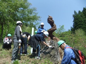 今日は毎年参加させていただいているイビデンさんの植樹祭が行われました。午前中は藤橋の道の駅の裏にある木々を守るための活動を行い、午後からはお箸づくりをさせていただきました。普段したことのない作業が多く、生徒たちにとっては貴重な体験となりました。