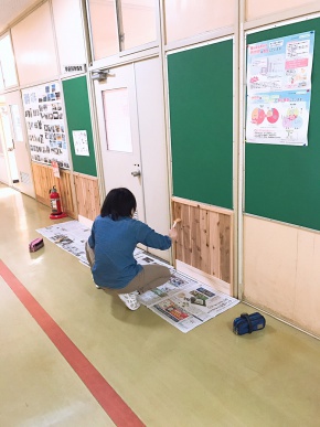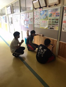 中学3年生の技術の授業で腰板を貼ってきましたが、ニスを塗り始めたグループもあり、いよいよ完成に近づいています。綺麗に仕上げるために、どのように塗ったらよいかなと試行錯誤していました。みんなで協力する姿が見られ、嬉しく思います。