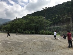 最近は湿度が高く、ジメジメとした日が続いています。 今日は、朝から天気も良く、グラウンドも乾いていたので、ソフトボールを行いました。 2チームに分かれ、試合を行いました。