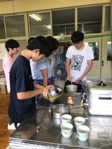 午後から中学3年生が家庭科の授業で、プリンを作っていました。 夏休み明けでみんなとても元気がよく、わきあいあいと楽しく作る様子が伝わってきます。 2学期はどんな日々が待っているのでしょうか。楽しみですね。