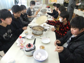 今日のお昼ご飯は高校3年生のN君が【関西風すきやき】を作ってくれました。卒業してから料理の道に進むN君にとっては不本意な面もあったようですが、非常においしかったです。ありがとう、N君。