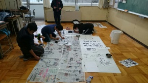 先週の高校生の書き初めに続いて、今日は中学生の書き初めを午後から、各学年ごとに教室で行いました。生徒は、課題の文字を選んで、それぞれ取り組んでいましたが、中には書くことに集中するあまりに、墨が服に付いていることも忘れて書いていました。出来上がりは、また廊下に張り出して鑑賞したいと思います。