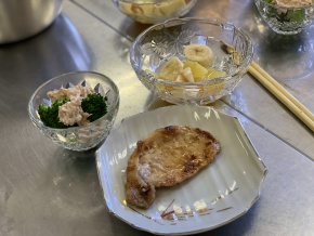 今日は午後に1.2年生が家庭科の調理実習で生姜焼きを作りました。