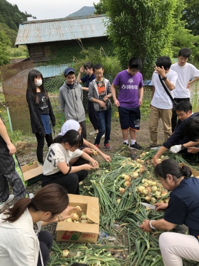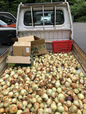 今日は地域の区長さんからのご厚意で、玉ねぎ収穫のお誘いをして頂きました。区長さんが言うには、雨降りのめに動物が食べに来てしまうとのこと。 授業後に有志で集まった生徒と職員で区長さんの畑にお邪魔して皆で玉ねぎを収穫しました。その量、なんとこんなにたくさん!!(写真) 次回はジャガイモ堀をさせて頂けるとのことです。区長さんいつも本当にありがとうございます。