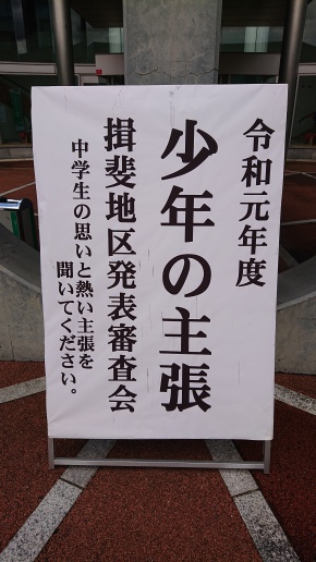 今日は中学3年生のIさんが「少年の主張 揖斐地区発表審査会」に参加しました。Iさんの題名は「私に見える世界」です。朝の生徒たちによる自主的な校内清掃活動を通して変わっていった自分自身の内面を情熱豊かに語ってくれました。結果は11名の中から3名が選ばれる最優秀賞に輝きました。ビデオ審査の西濃地区大会を通過して、8月2日に羽島市で行われる岐阜県大会に参加できるといいですね。Iさん、お疲れ様でした。
