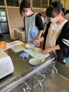 今日の三年生の家庭科は、スイートポテトづくりでした。 家庭科室のある1階は甘い匂いでいっぱいでした。 Aくんが、美味しく作れましたよ!僕たちのグループが一番です!と嬉しそうに話してくれました。
