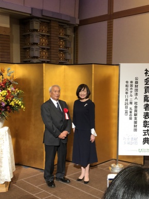 11/25に公益財団法人社会貢献支援財団による「第53回社会貢献者表彰式典」が挙行されました。この度、これまでの活動に評価を頂き学園長が表彰されました。参加された多くの方々からも西濃学園の評価を頂く声を多数聞きました。学園一同、大変喜ばしい限りです。 今後も学園長に続き私達にできることを一生懸命にしていきたいと思います。
